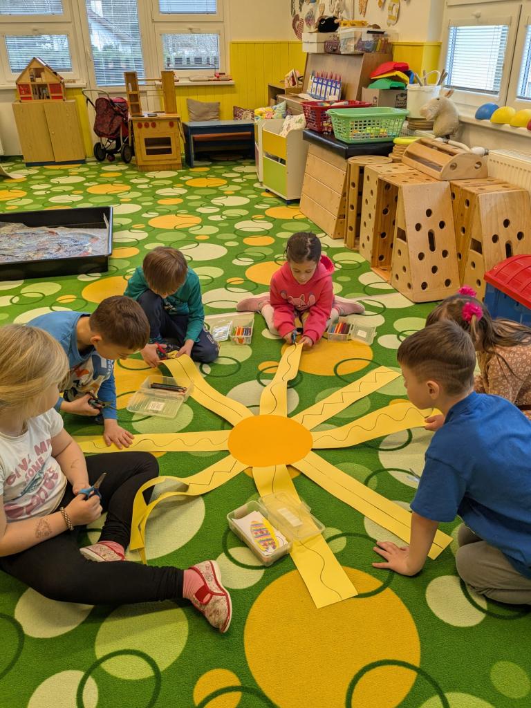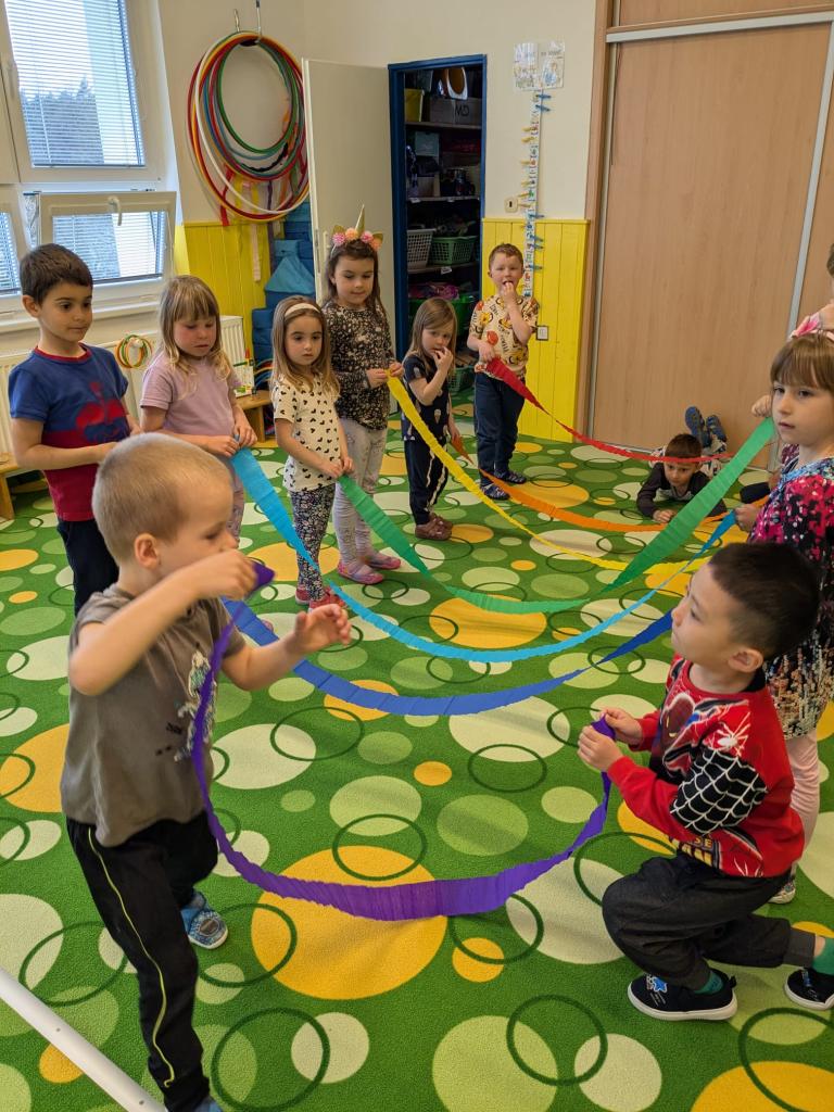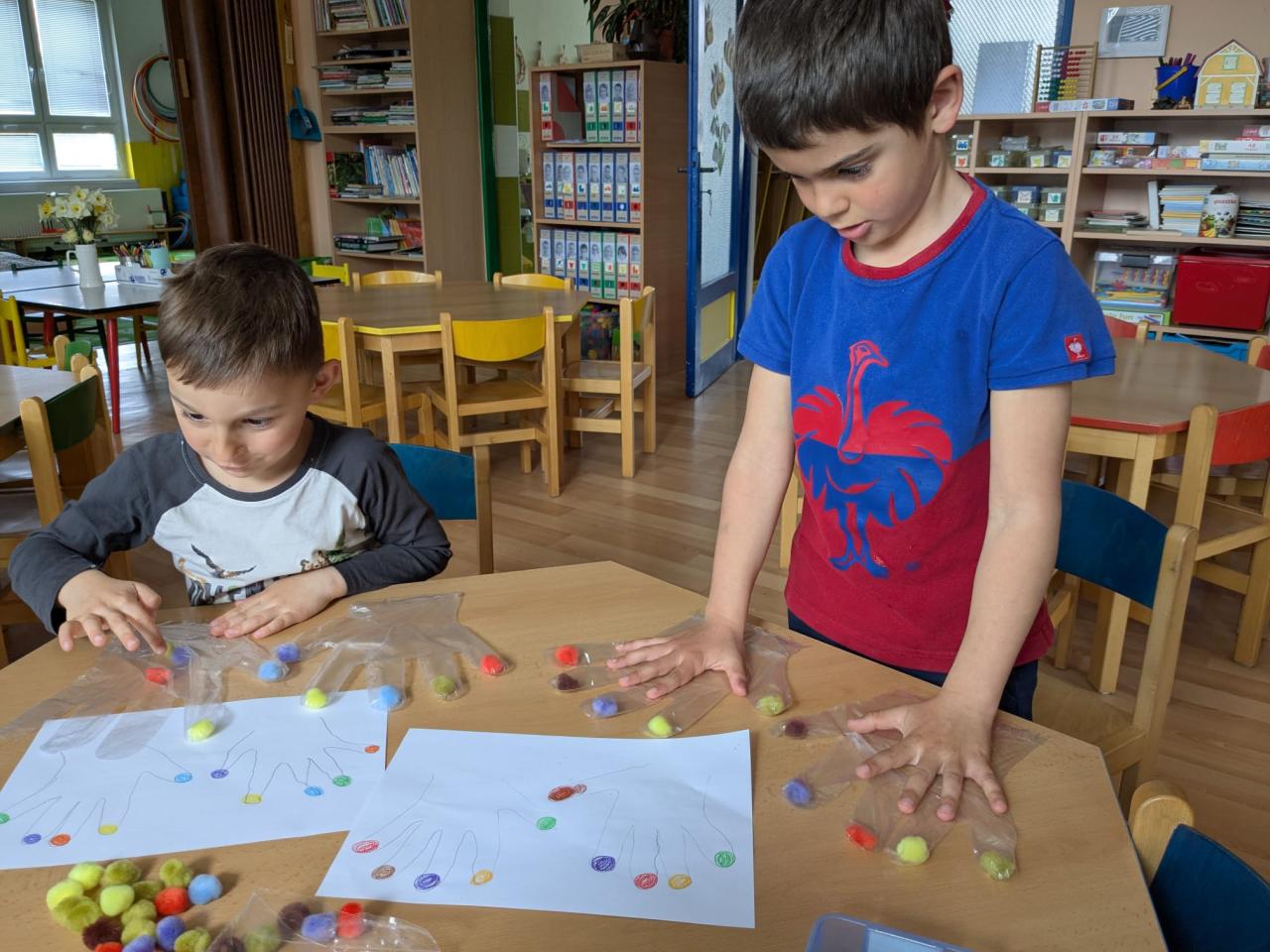 -povídání o počasí, jeho proměnách, výtvarné činnosti a pracovní činnosti, hry na propojování hemisfér a procvičování osové souměrnosti