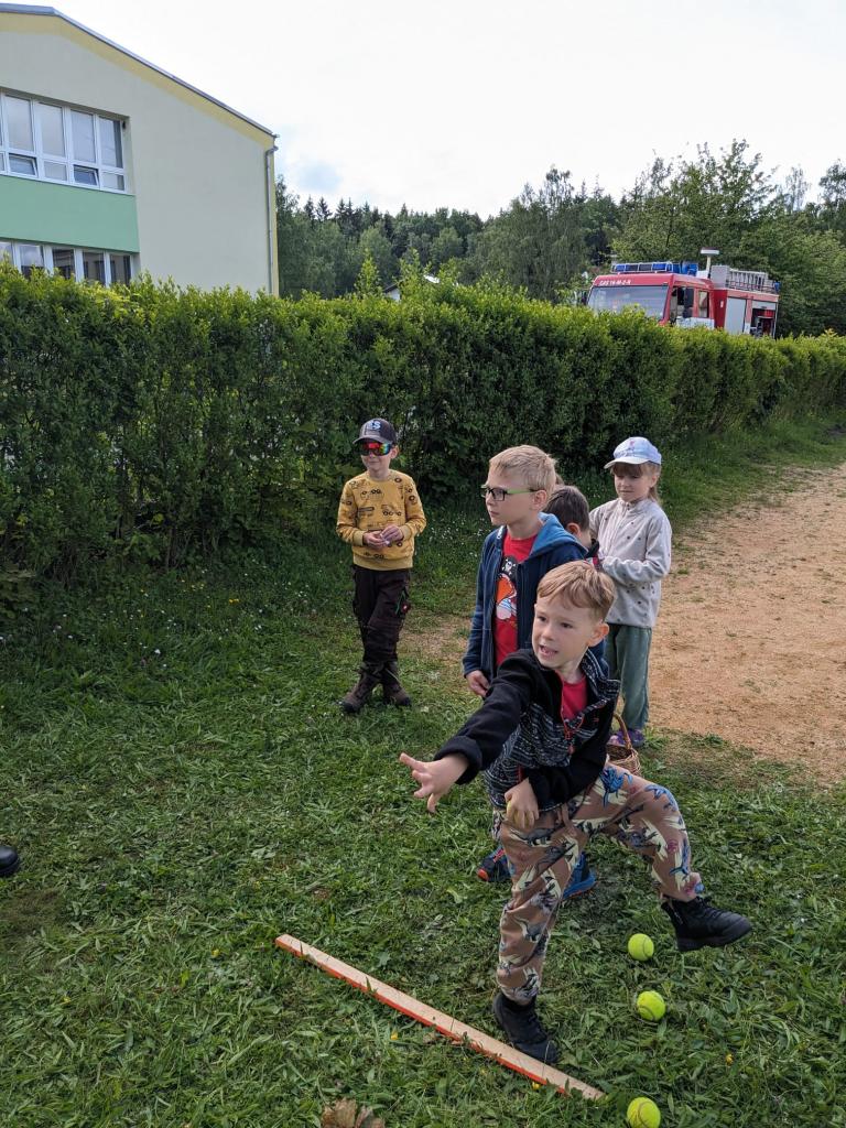 -oslava Dne dětí přichystaná členy sboru dobrovolných hasičů a dětmi 5.ročníku základní školy
