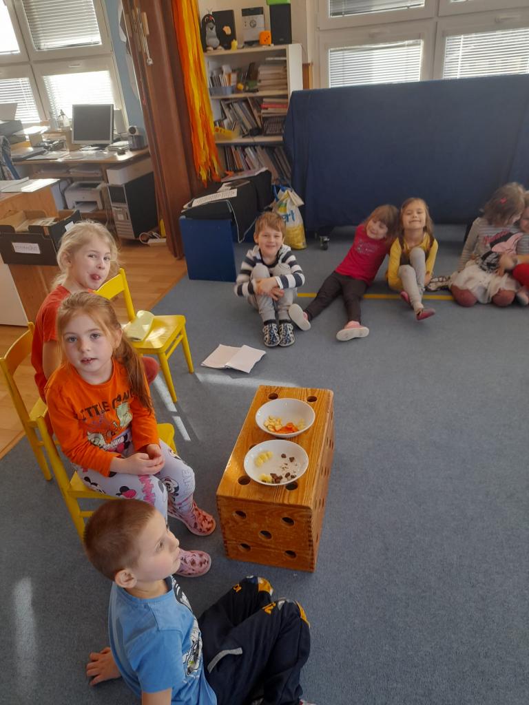 Hmatem poznám, co je hladké, chuť mi poví, co je sladké, čich, ten vždycky vyzvoní, když mi něco nevoní. Zrak mi slouží ke koukání a sluch zase k poslouchání.