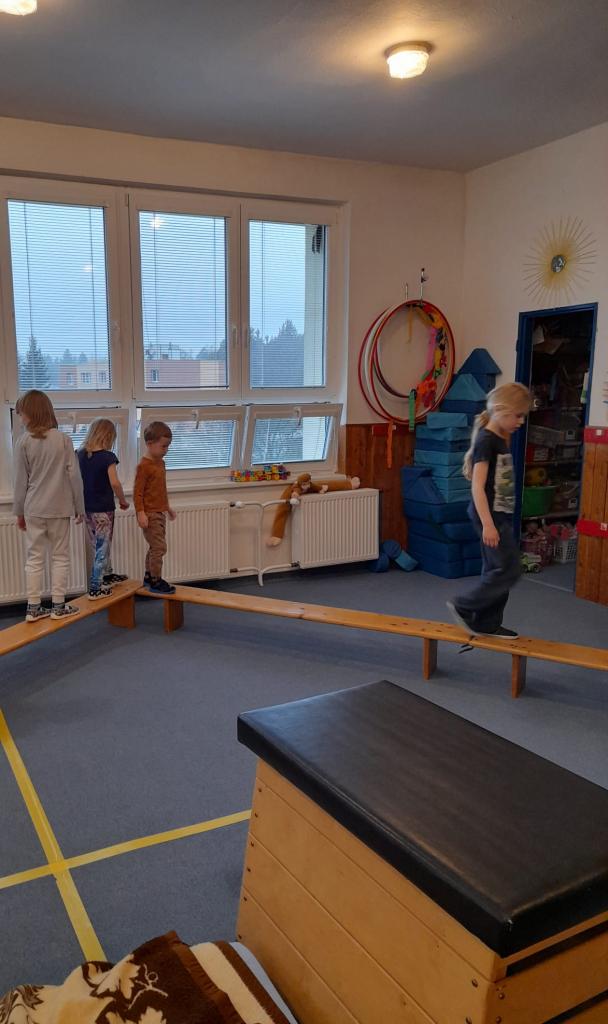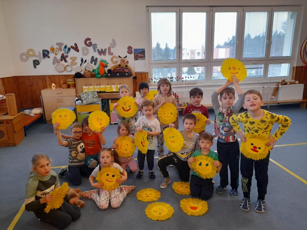 -sluníčka z krepového papíru, procvičování předčtenářské a předmatematické gramotnosti, překážková dráha