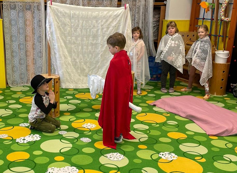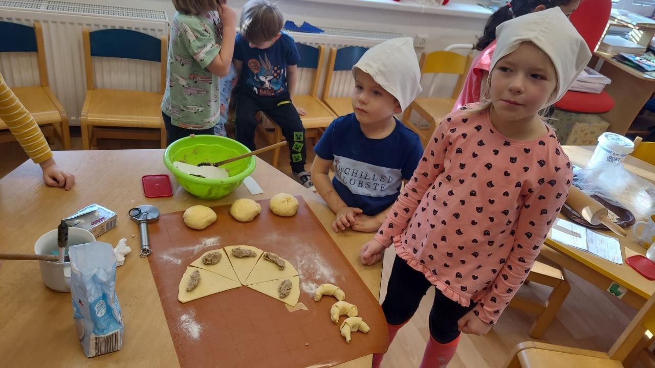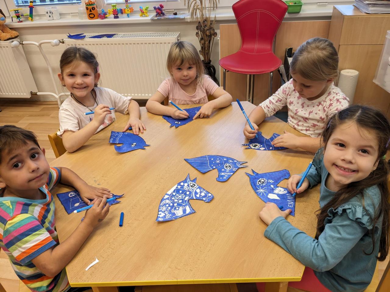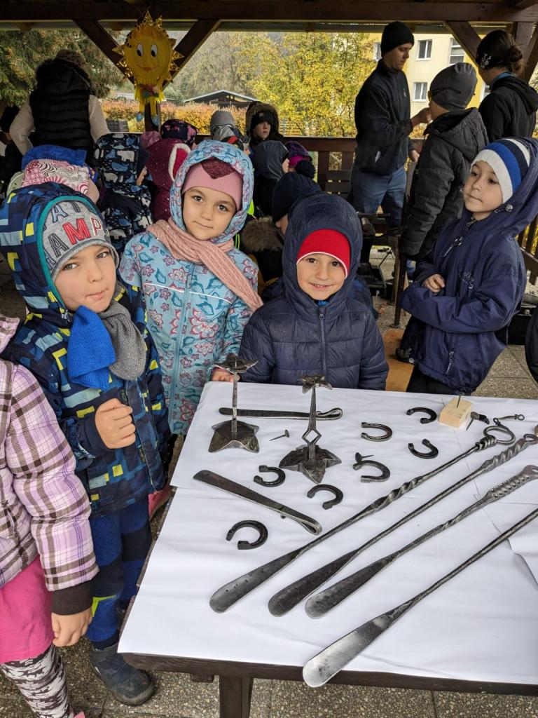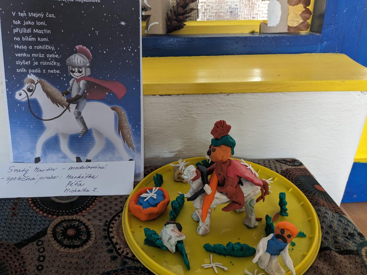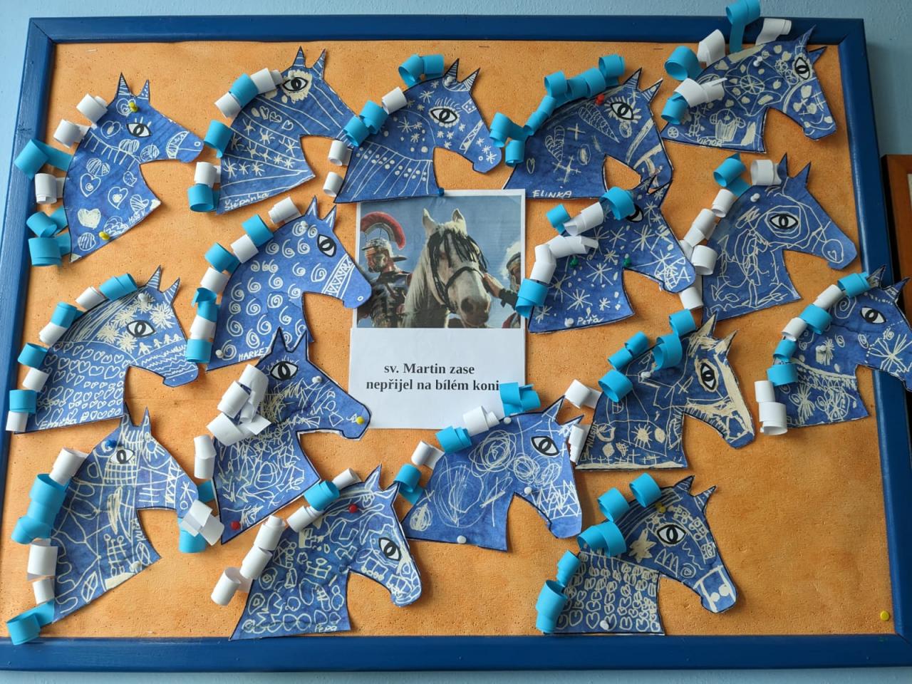 -kovářská dílna na zahradě ZŠ, dramatizace legendy, tanec na židličkách představující cestu sv. Martina, výtvarně zpracovaný Martin na koni a pečení svatomartinských rohlíčků
