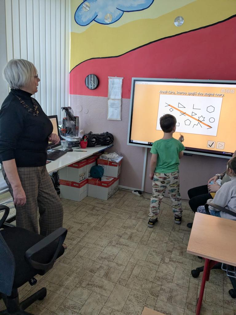 -paní ředitelka ukázala dětem školu od sklepa až po nové zrekonstruované půdní prostory