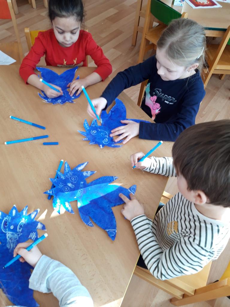 -cvičení se zimní tématikou, vyrábění "mrazíka", sněhuláci z obručí, "ledové království" z magnetické stavebnice
