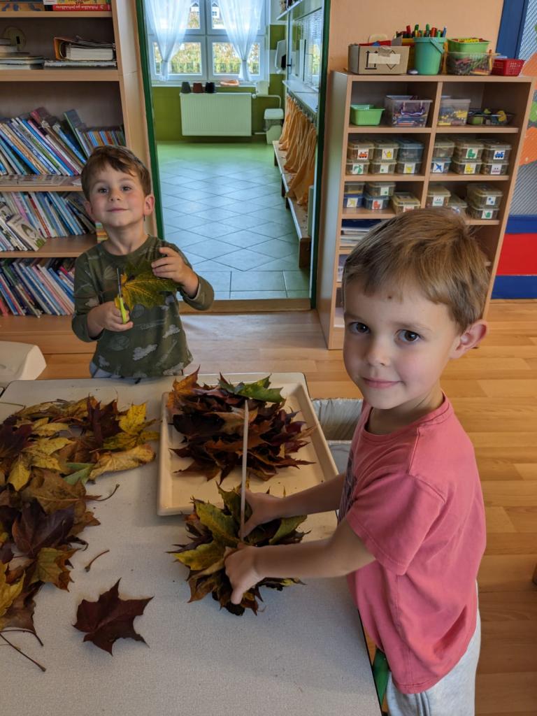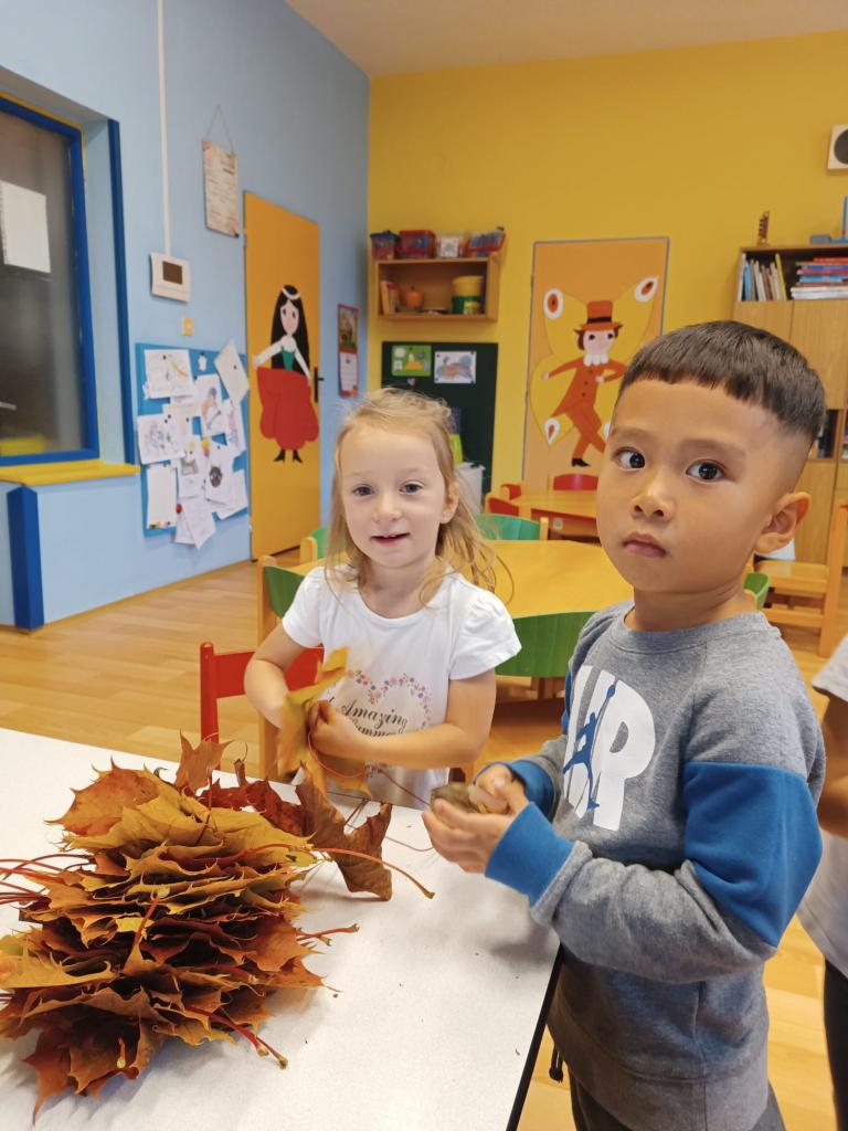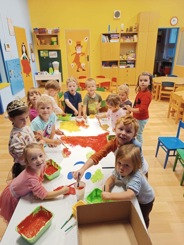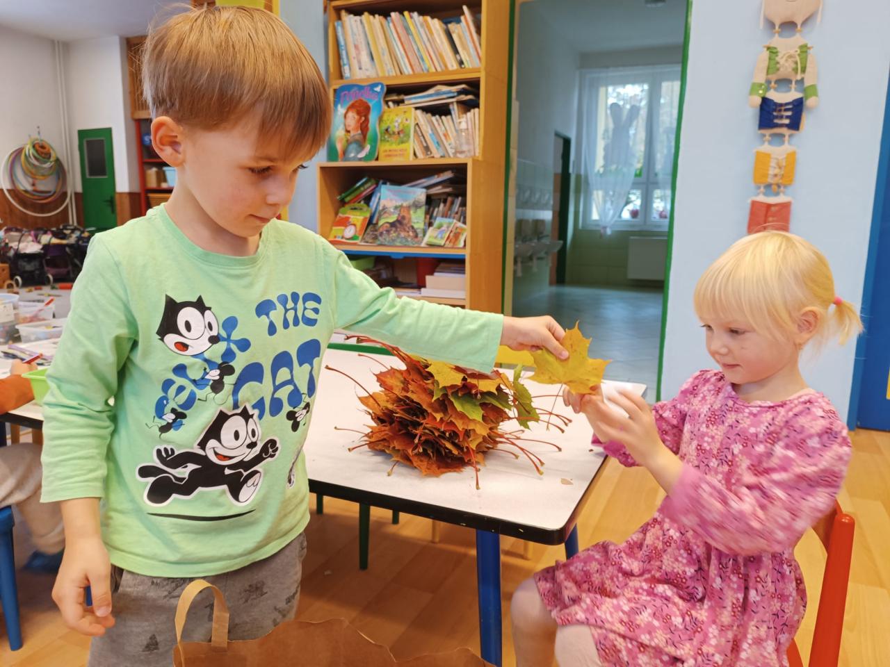 -skřítek Podzimníček, školkové strašidlo-společná práce a dlabání dýně