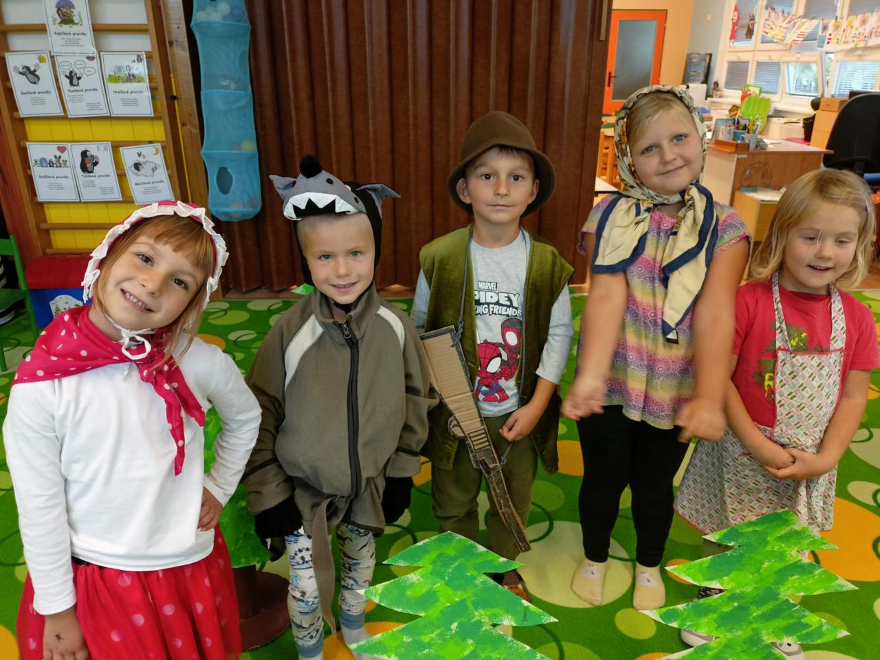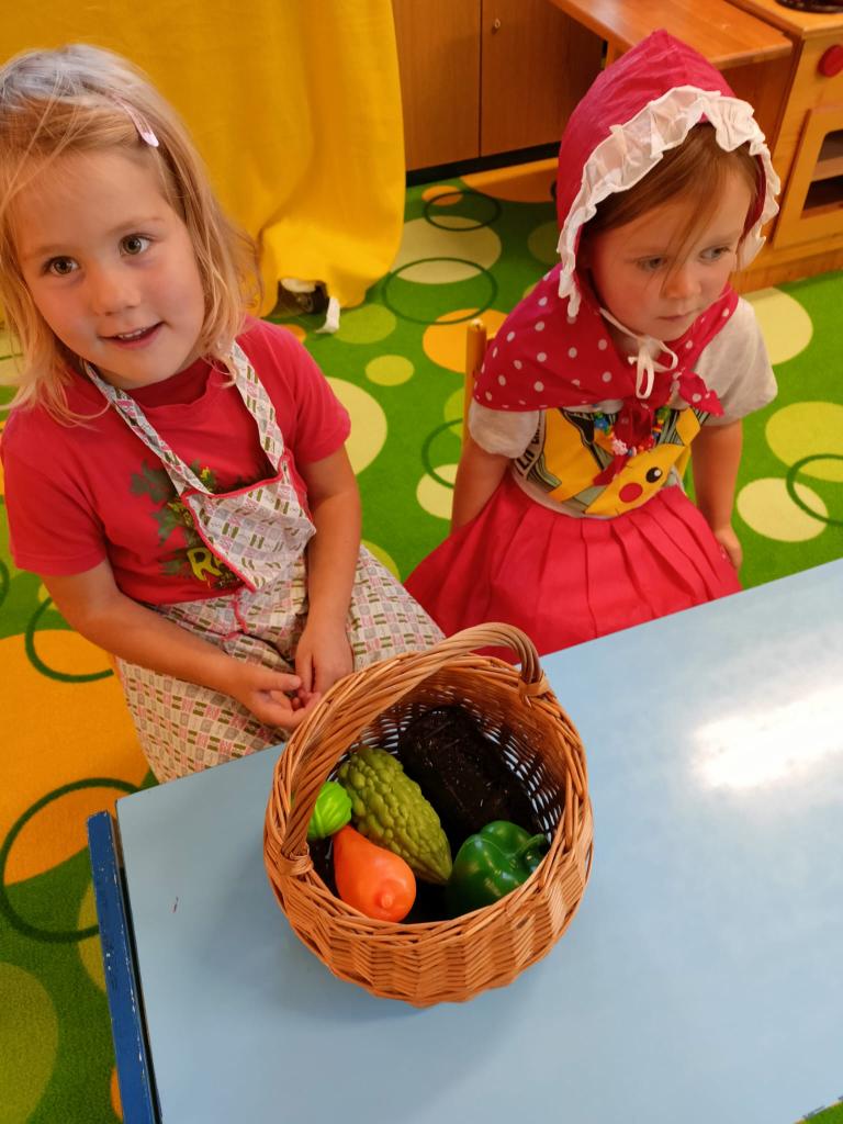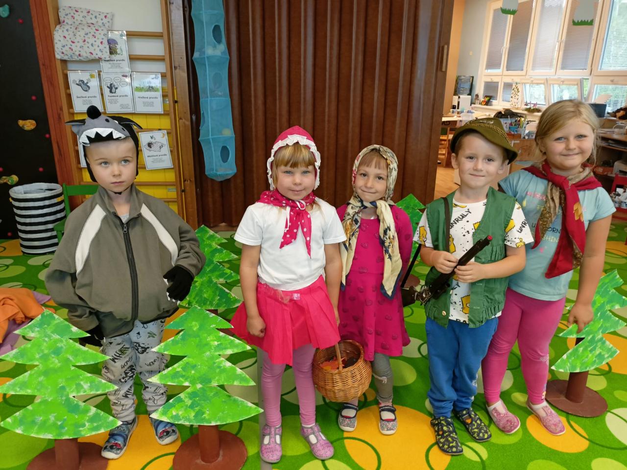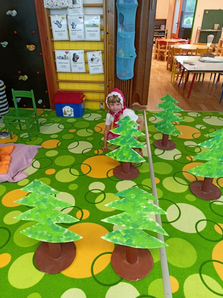 -hry, cvičení, procvičení prostorové orientace, geometrických tvarů, výtvarná činnost a dramatizace pohádky