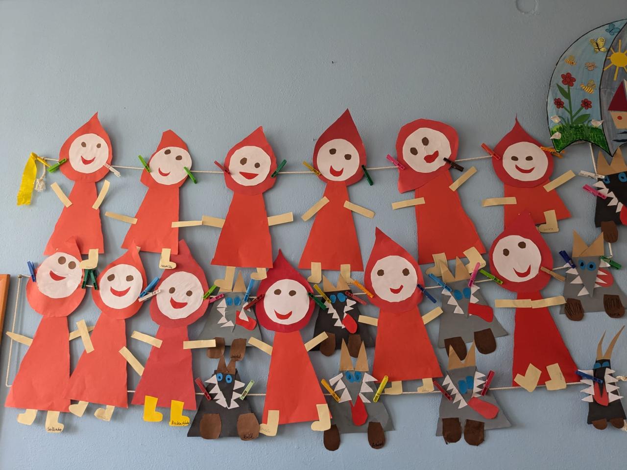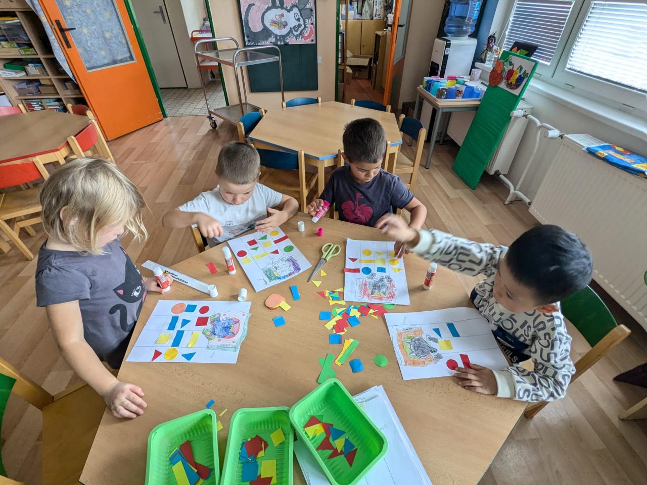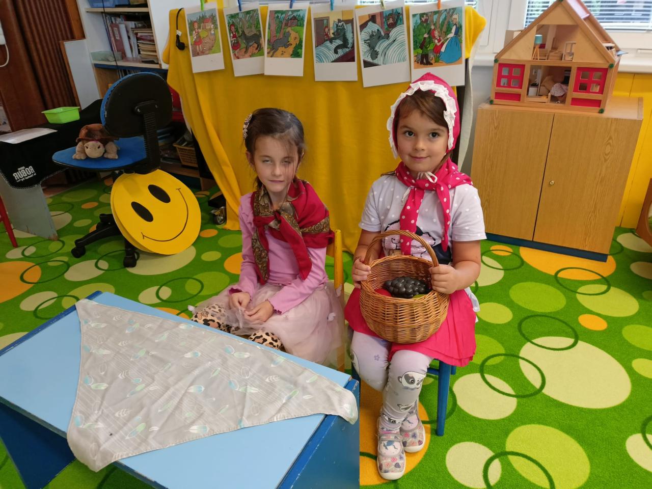 -hry, cvičení, procvičení prostorové orientace, geometrických tvarů, výtvarná činnost a dramatizace pohádky