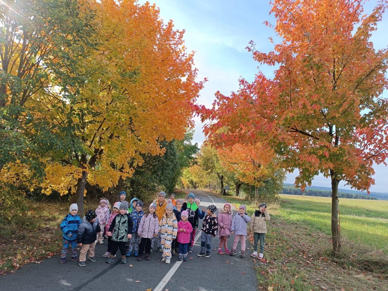 -návštěva chovatelské výstavy, cesta autobusem, procházka přes kopec krásnou podzimní přírodou