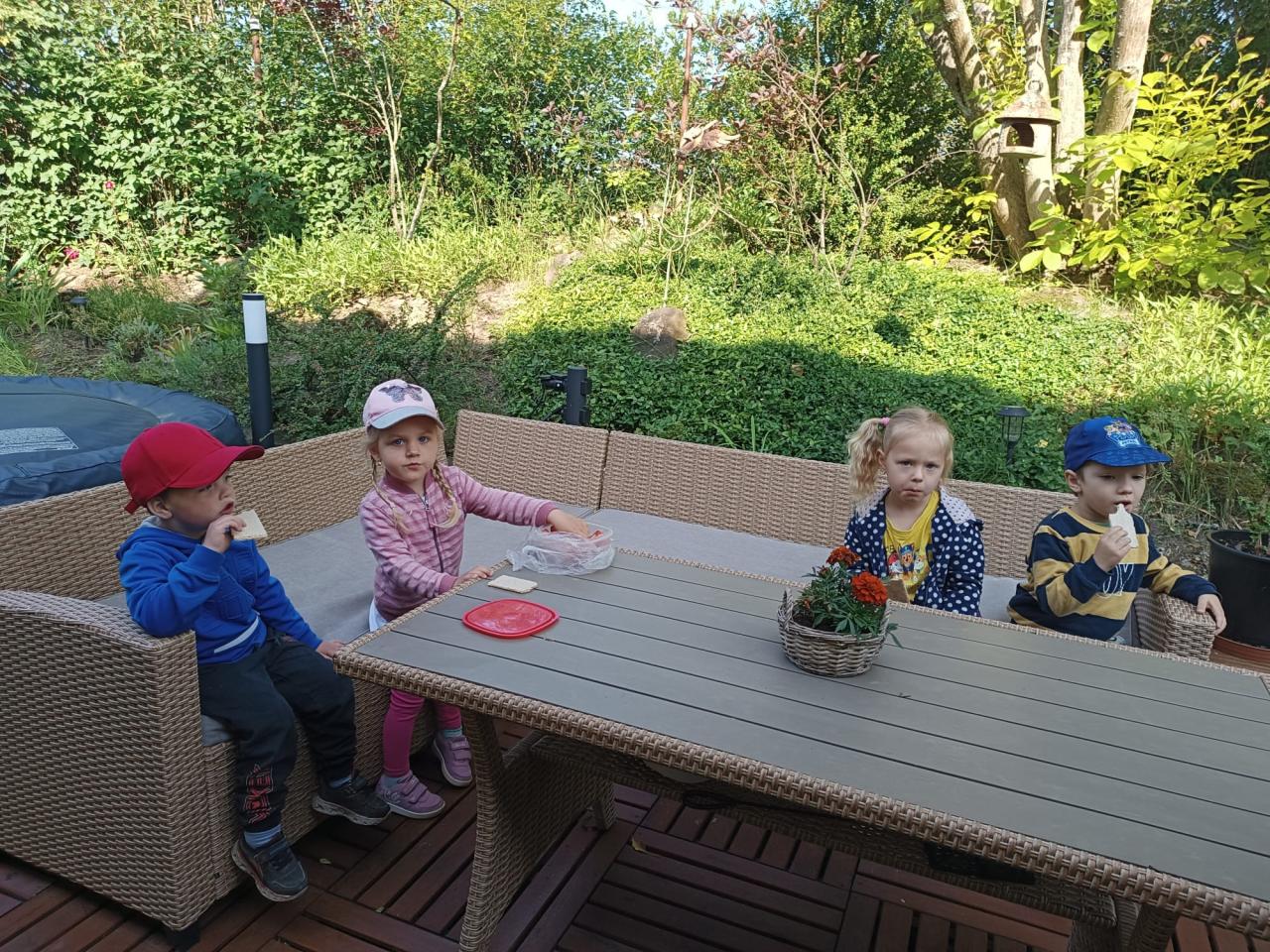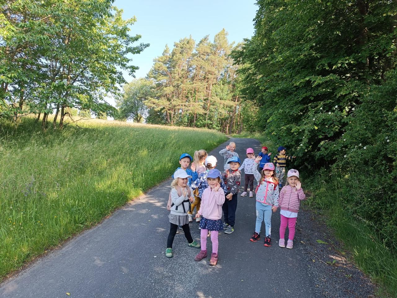 -třída Rybiček jela na výlet do Břetislavi, občerstvení u paní Terezky Coufalové, dobrodružná cesta lesem zpátky