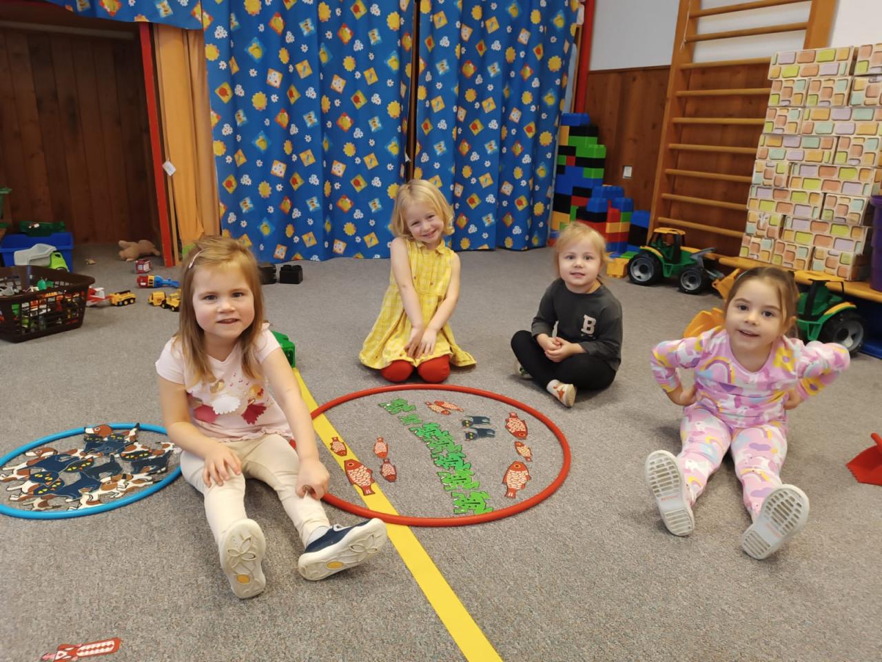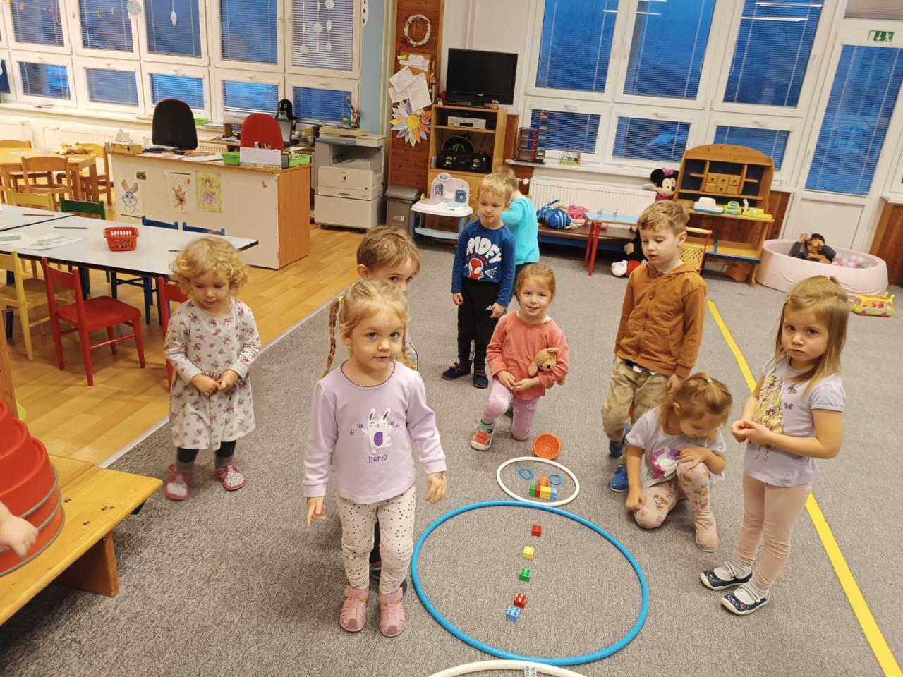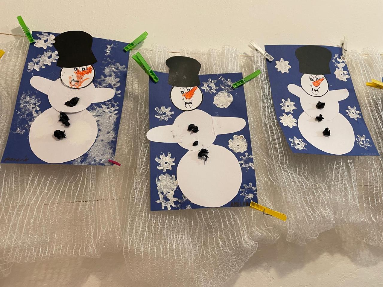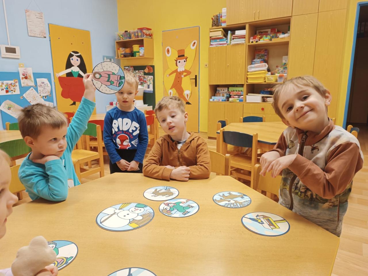 -zimní radovánky u Rybiček, cvičení s vločkami, tanečky, zimní písničky, papírová koulovačka, pohádky se zimní tematikou, výtvarná činnost