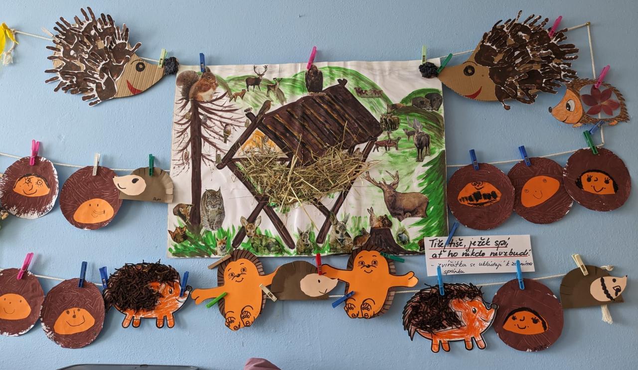 -povídání o tom, jak pomáháme zvířátkům v zimě, dramatizace pohádky, procvičování předmatematických dovedností a prostorové orientace, výroba zimních dekorací