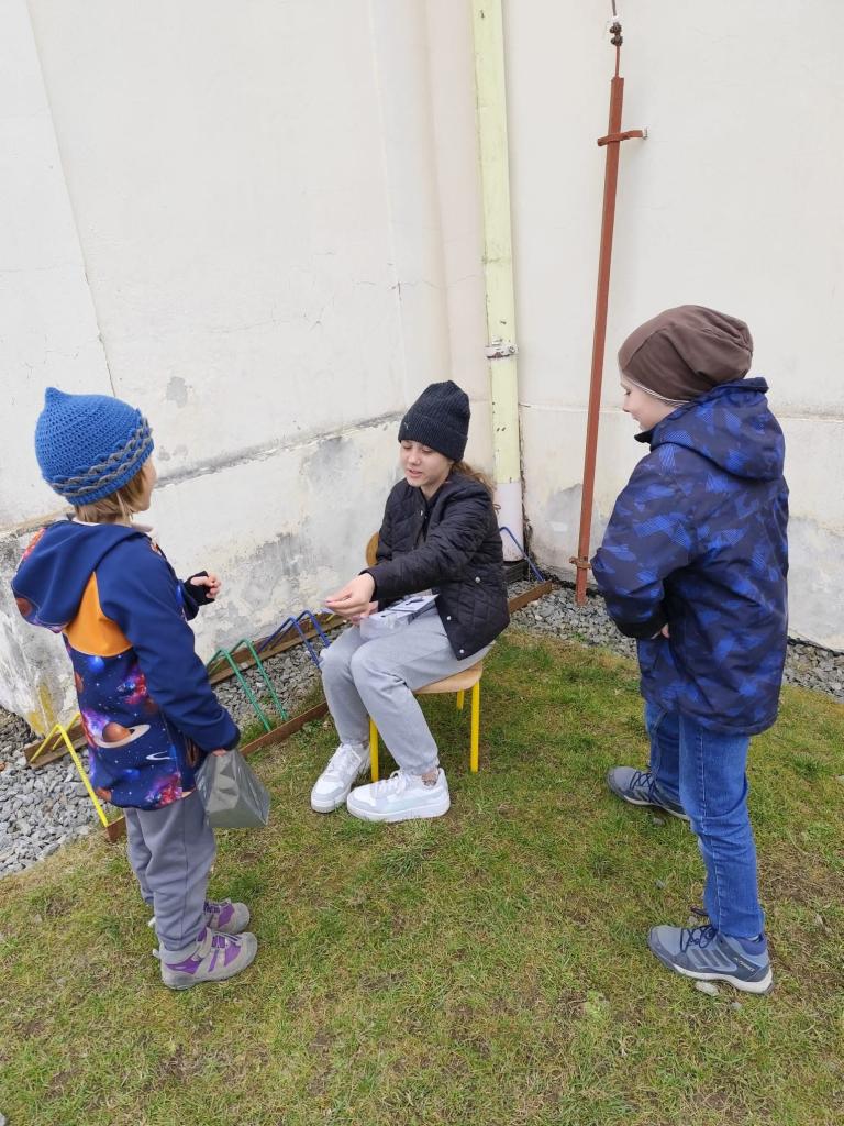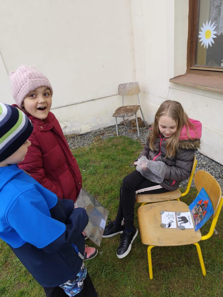 Pohádkové hádání na školní zahradě - spolupráce, komunikace, zábava. Poznáváme české pohádky podle obrázků.