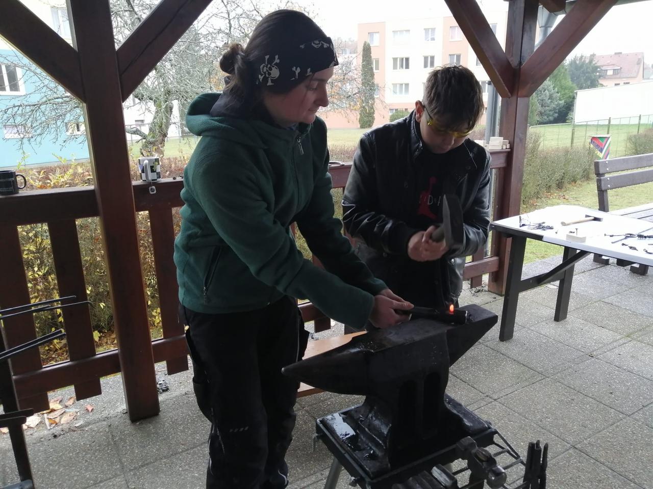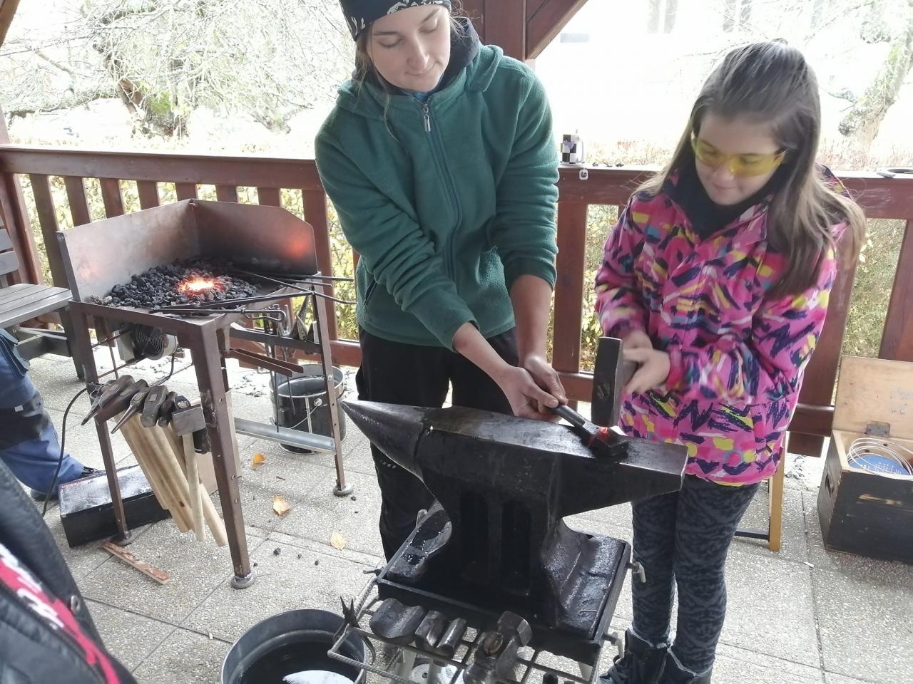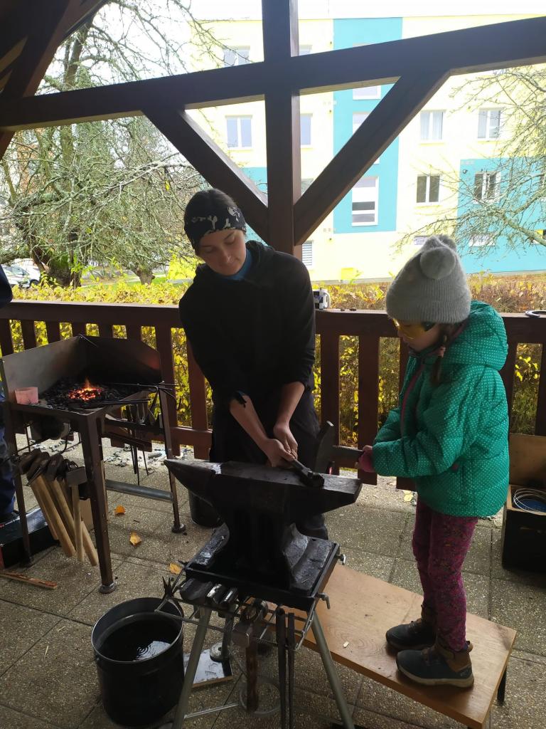Děkujeme kovářce Kateřině Slámové za skvělý zážitek a možnost zblízka nahlédnout a zkusit si kovářskou práci. Už víme, jak funguje výheň, jak se kovají různé předměty, jaké se k tomu používá nářadí. Žáci si ukuli hřebík a škola dostala hezký dárek - podkovu pro štěstí.