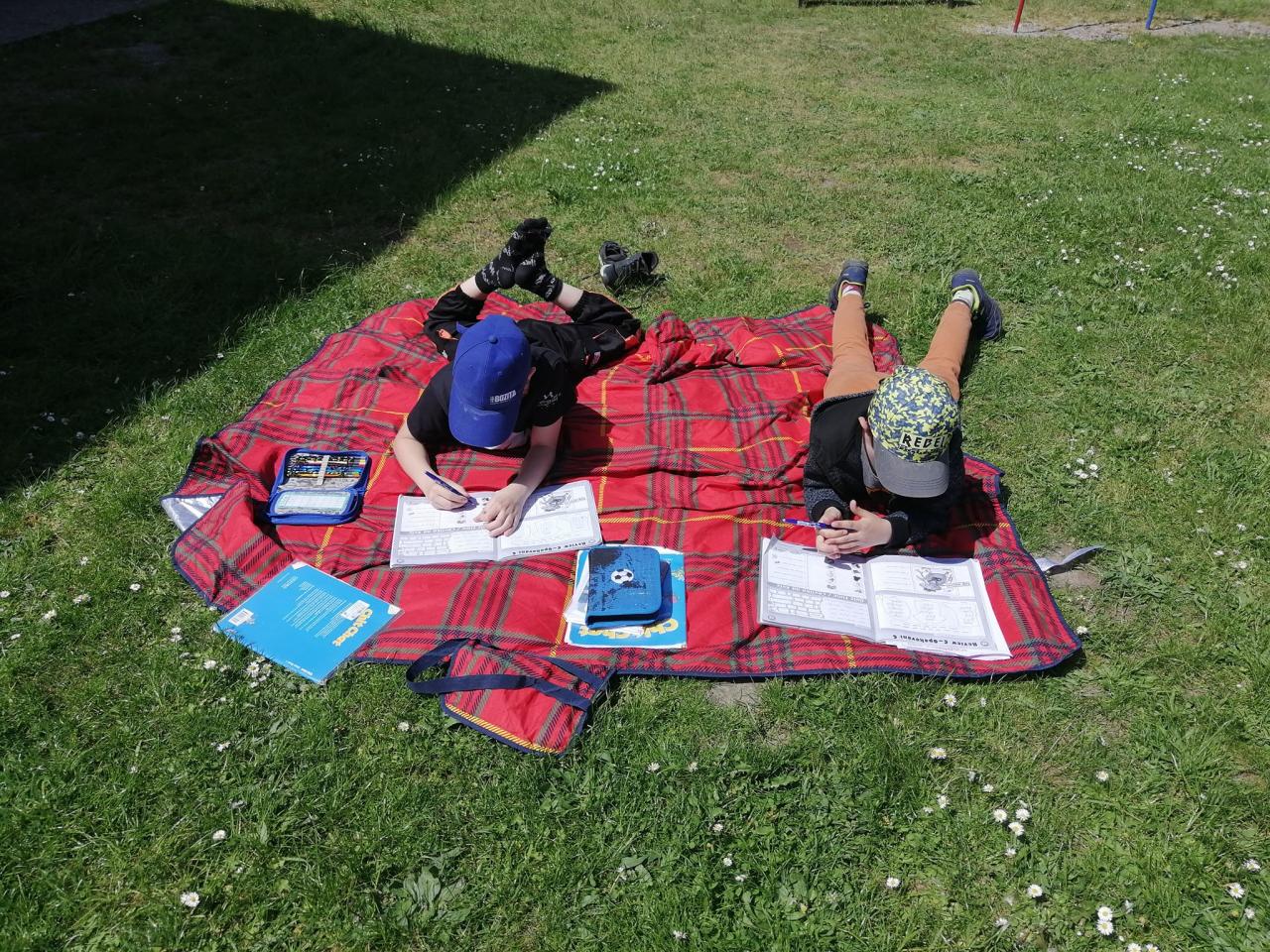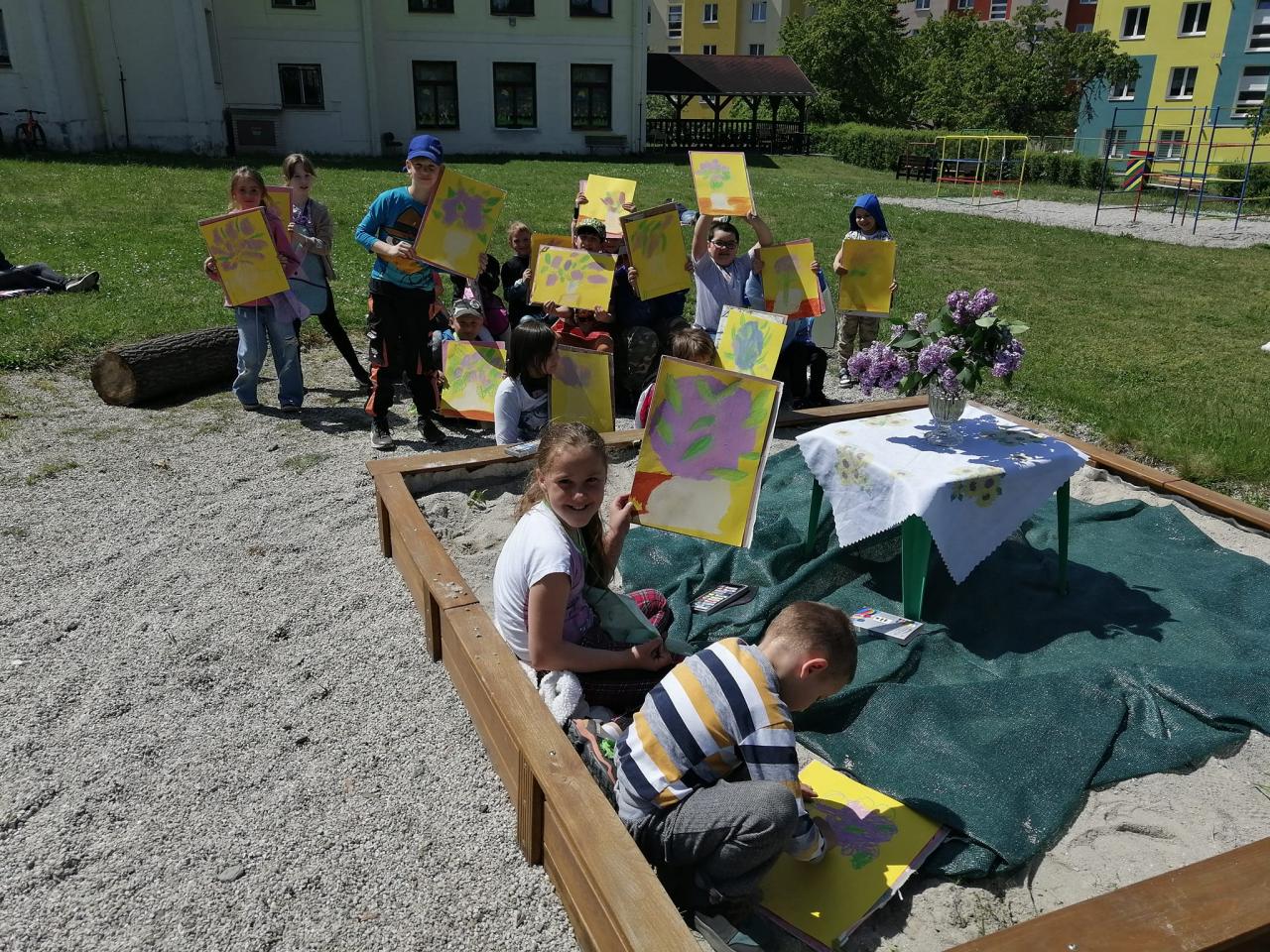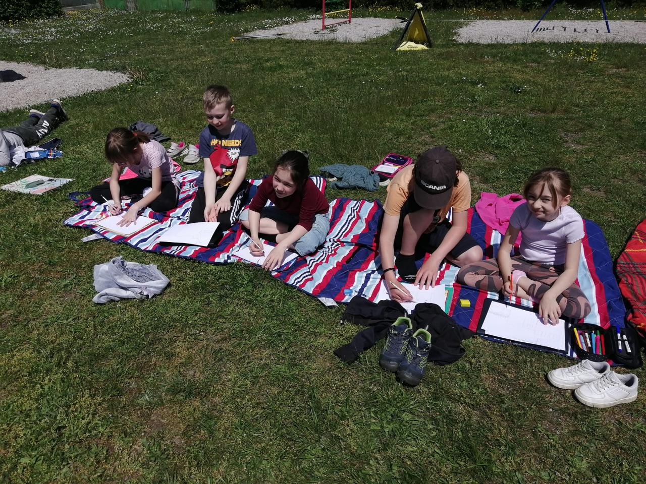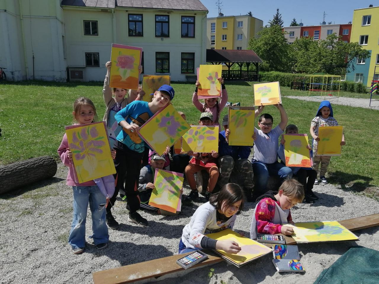 Krásné jarní počasí nás láká ven, kde se učíme, malujeme, sportujeme, svačíme, hrajeme si nebo jen tak odpočíváme.