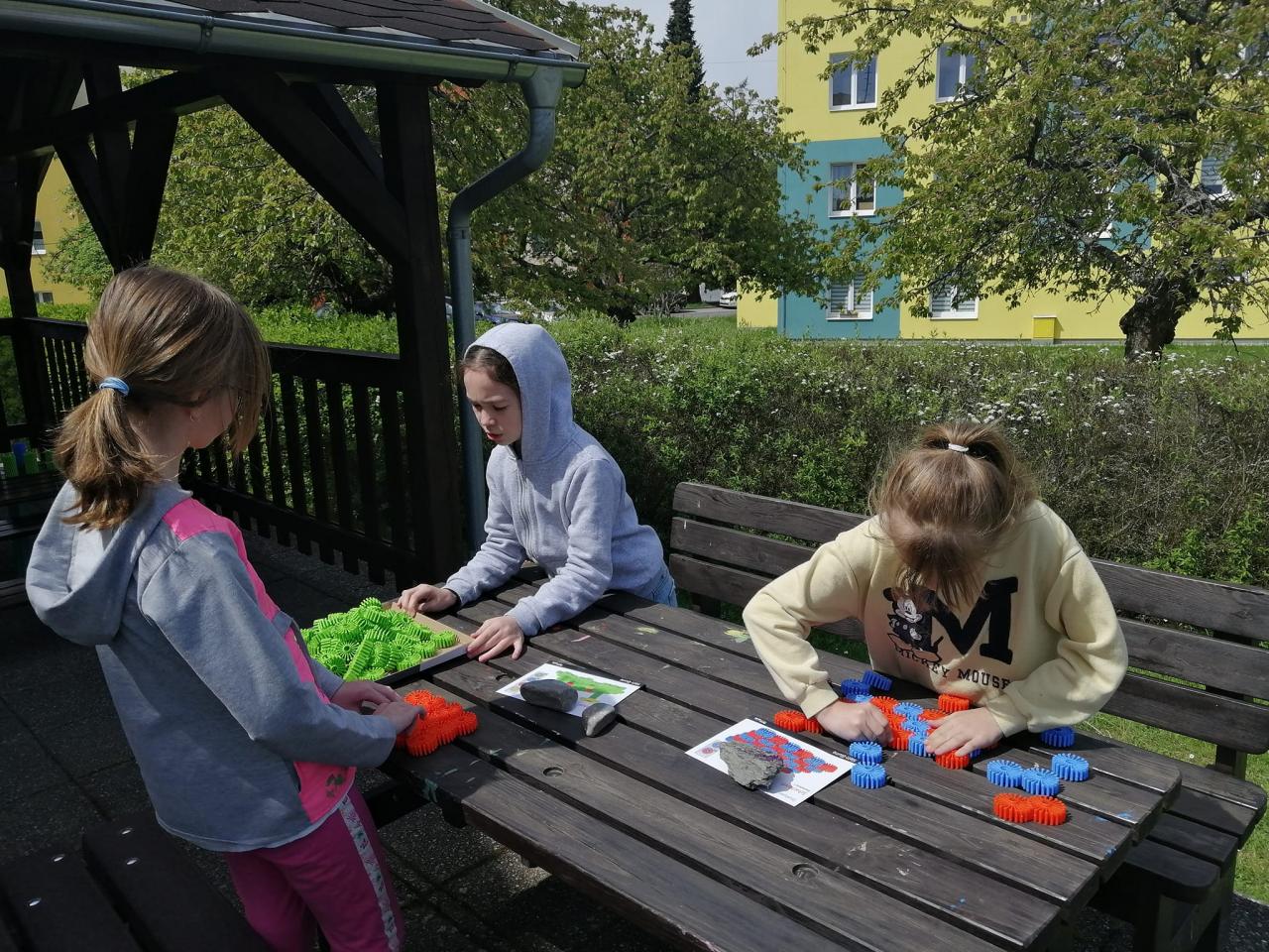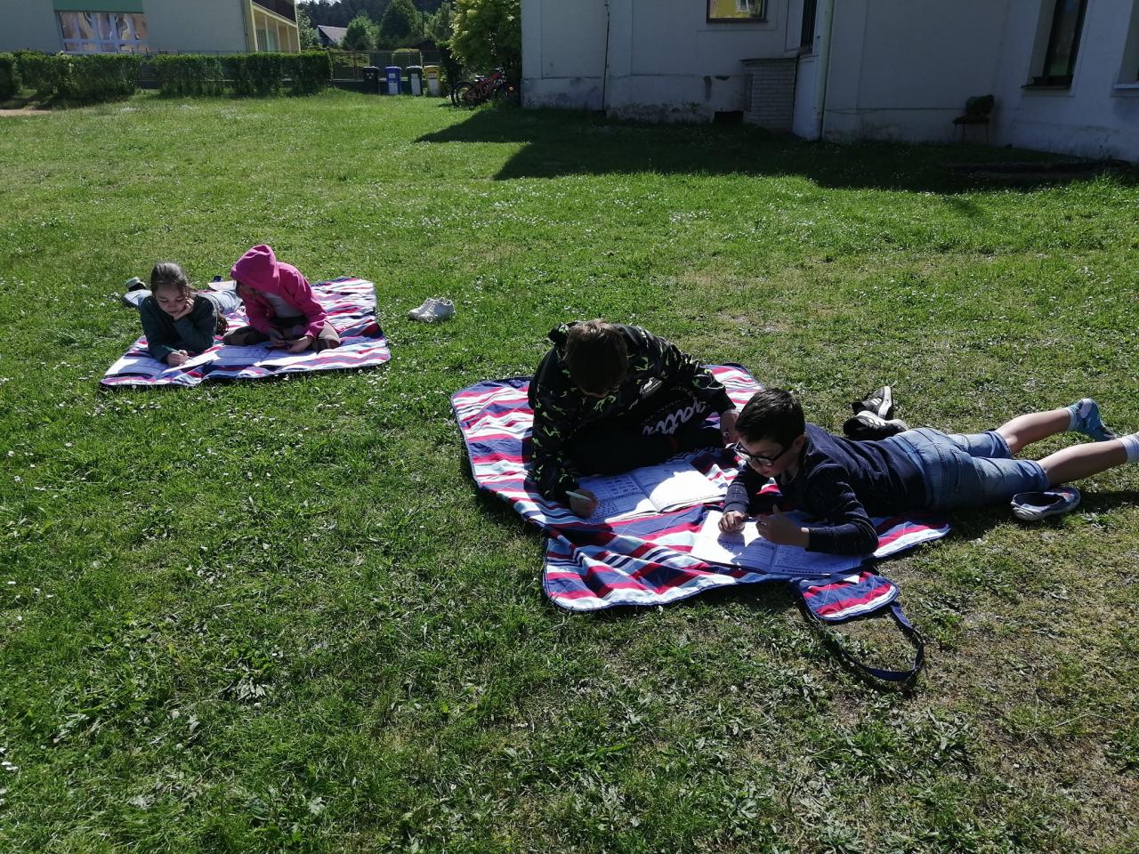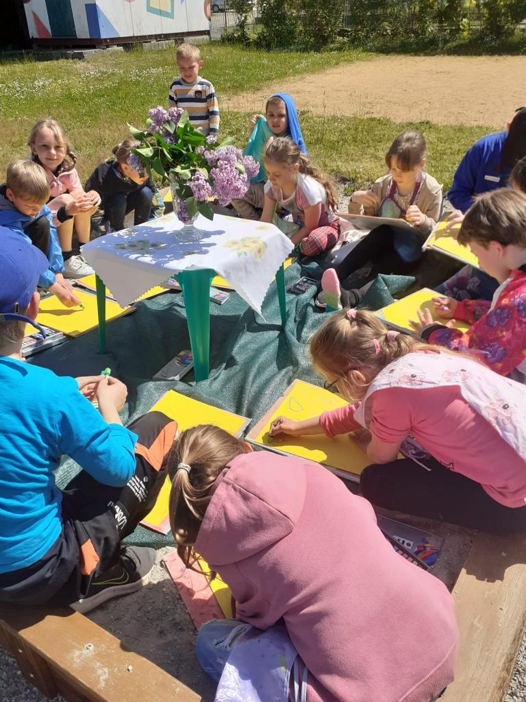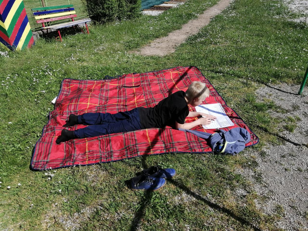 Krásné jarní počasí nás láká ven, kde se učíme, malujeme, sportujeme, svačíme, hrajeme si nebo jen tak odpočíváme.